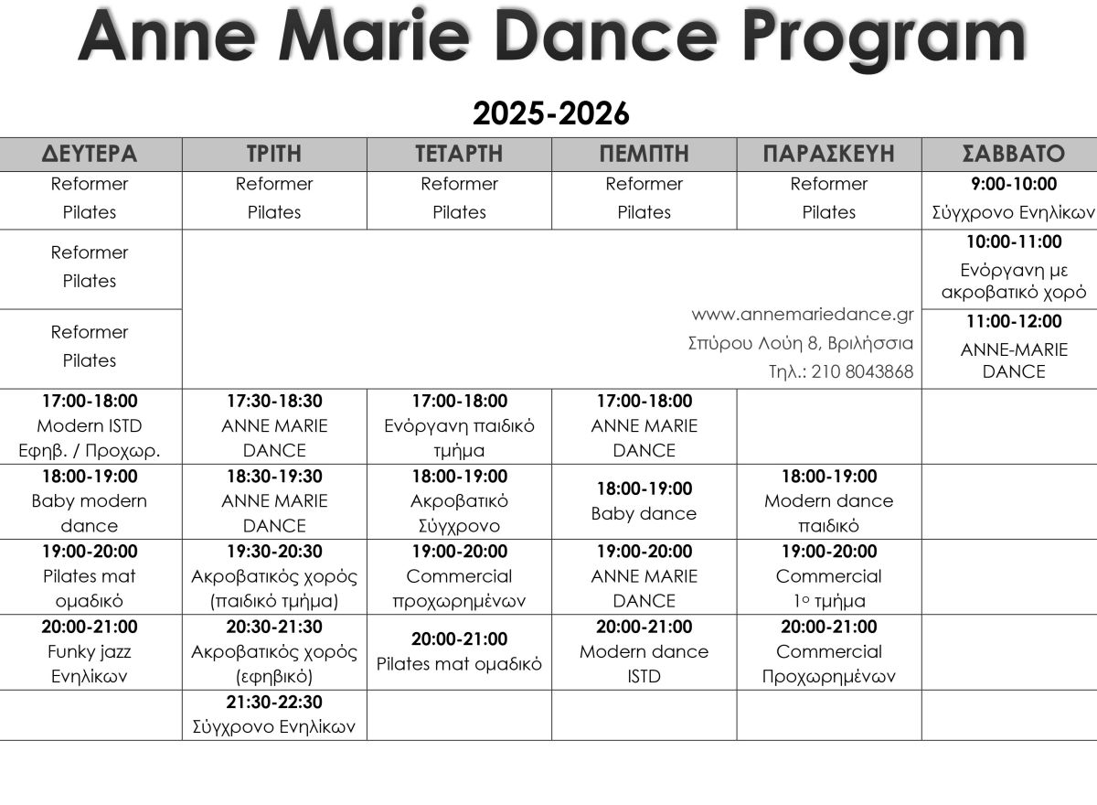 Χορέψτε - Γυμναστείτε - Διασκεδάστε: Αφεθείτε στη μαγεία του χορού, εξισορροπείστε την ενέργειά σας με αναπνοές, ασκήσεις και πνευματική συγκέντρωση, διασκεδάστε με τα προγράμματα μας στην σχολή χορού annemariedance σε ένα οικογενειακό περιβάλλον, που επιλέγει προσεκτικά τους καθηγητές και έχει πολλή αγάπη για τον χορό και τα παιδιά.